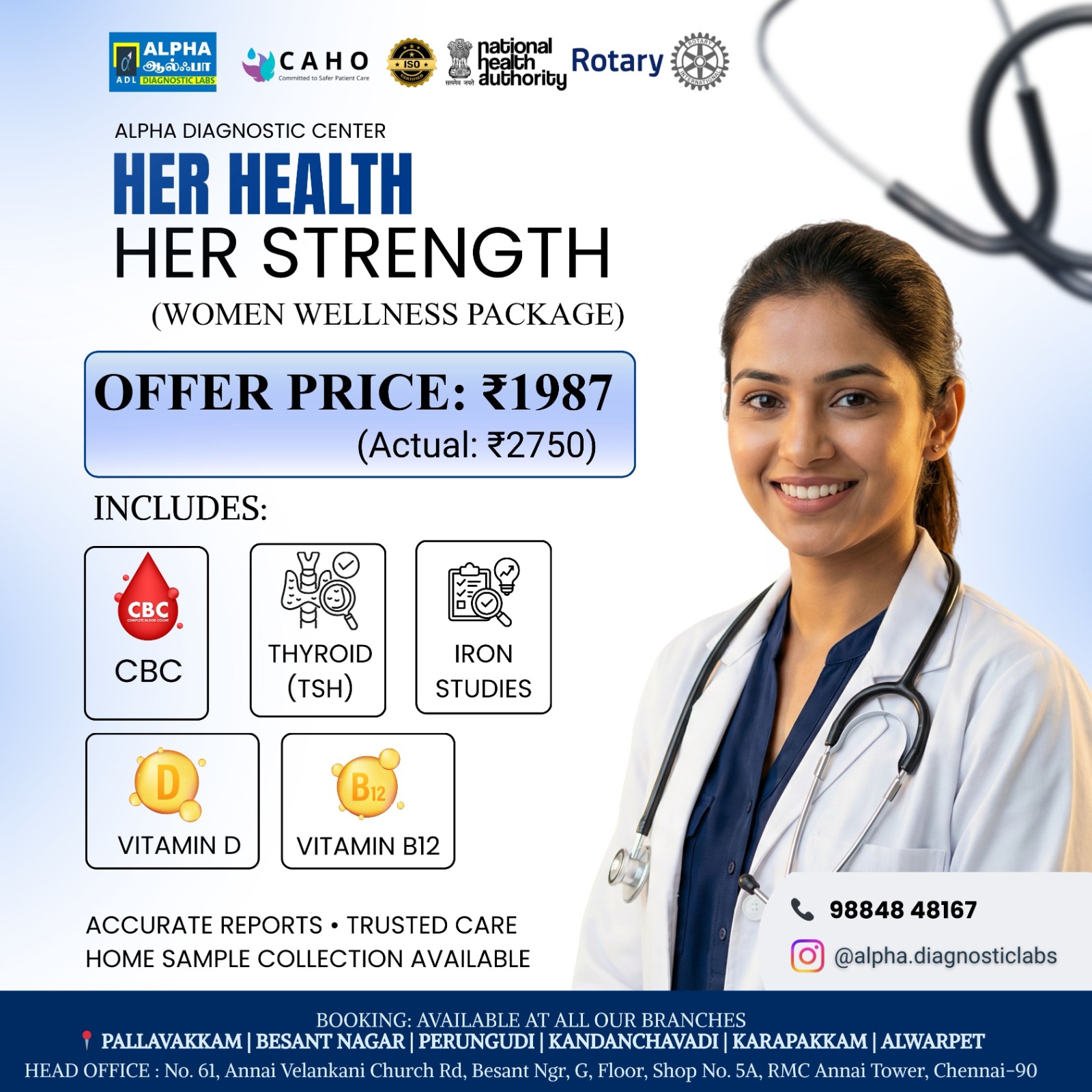 Welcome to ALPHA DIAGNOSTIC CENTER, an ISO-certified diagnostic centre in Chennai. We provide accurate and reliable health check-ups with advanced equipment, certified professionals, and a strong commitment to quality. Our goal is to ensure timely results you can trust.